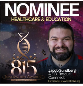 We are thrilled to announce that Jacob Sundberg, CEO and Founder of AED Rescue Connect, has been nominated for the prestigious Eiger Labs 815 Innovation Awards in the Healthcare & Education categories! This recognition is a powerful testament to Jacob’s visionary leadership and the profound impact his work has had on enhancing public safety and cardiac emergency preparedness across the community. His dedication to strategically placing Automated External Defibrillators (AEDs) and providing essential CPR/AED training through AED Rescue Connect showcases a true commitment to innovation that saves lives, empowering ordinary citizens to become life-savers in critical moments.